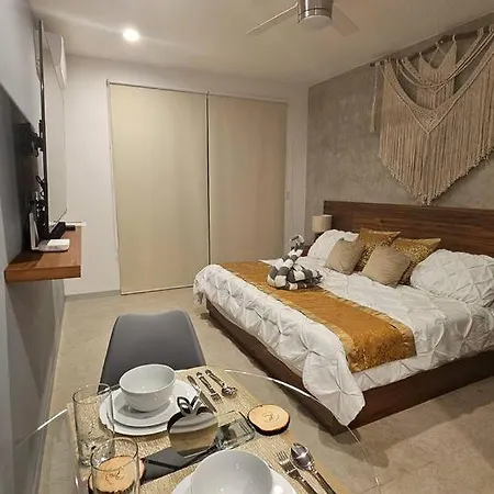 개인 수영장을 갖춘 이 Beach Studio In Playa Del Carmen 아파트 아파트는 쿨 비치 클럽에서 1.5km 떨어져 있습니다. 과달루페 교회는 도보로 14분 거리에 있습니다.